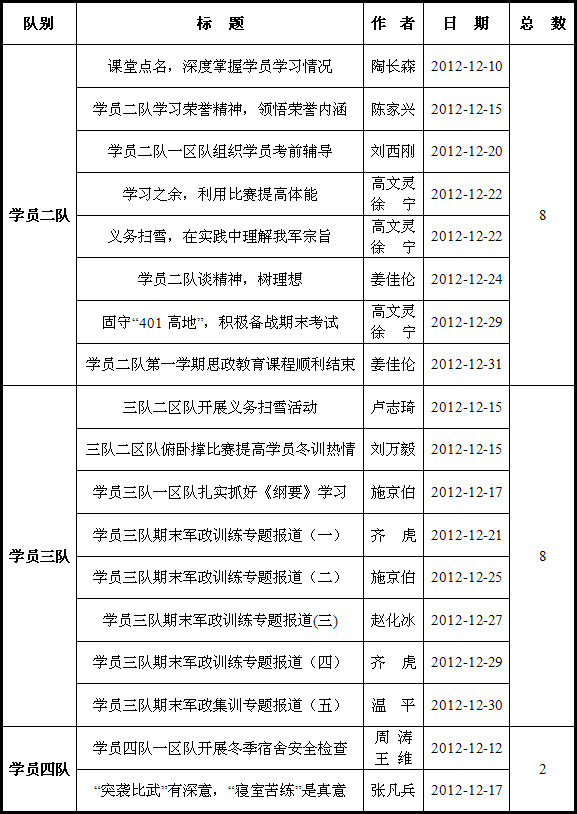 国防生网站十二月份学员队投稿公示
