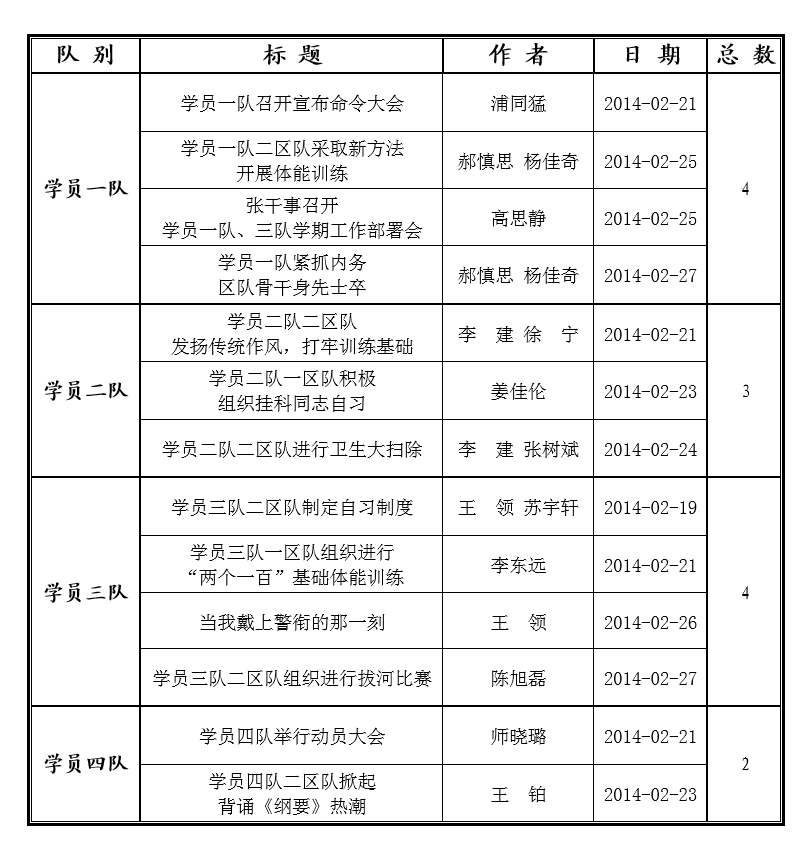 国防生网站一、二月份学员队投稿公示