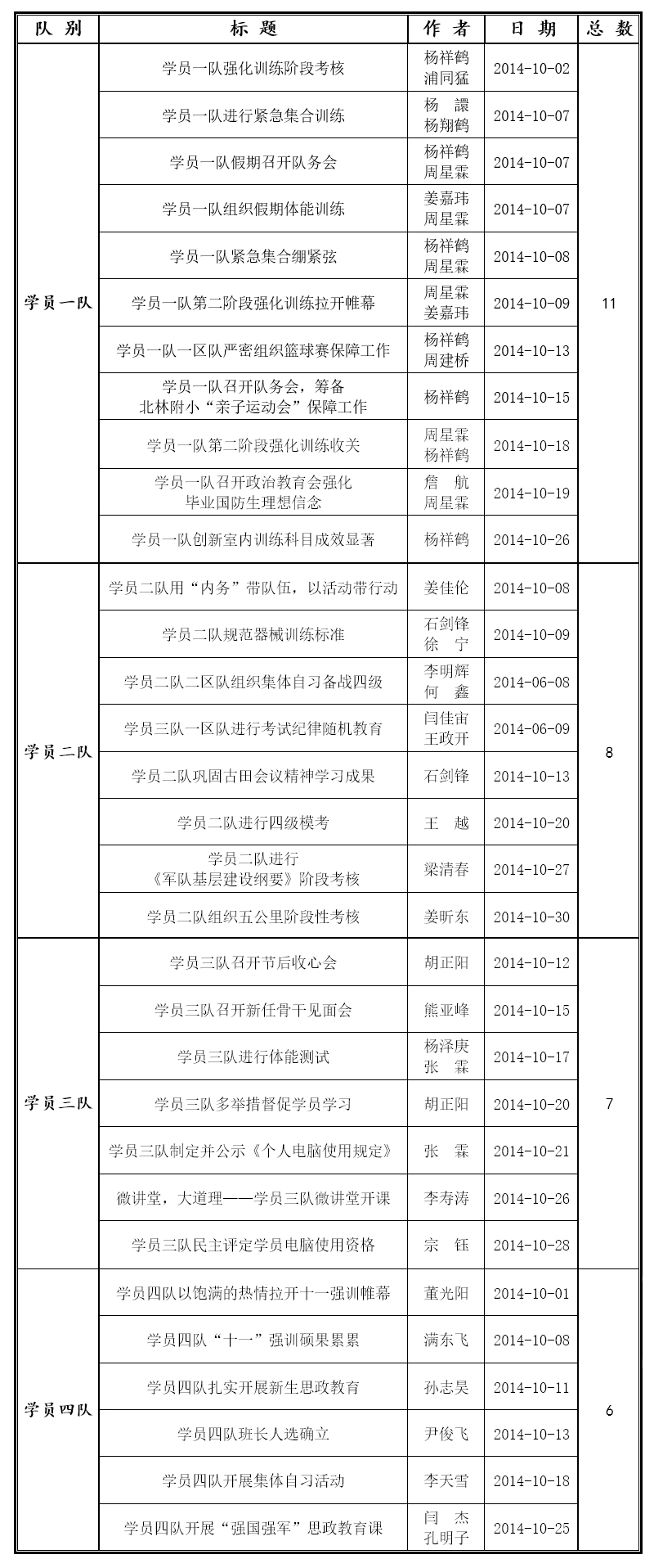 国防生网站十月份学员队投稿公示