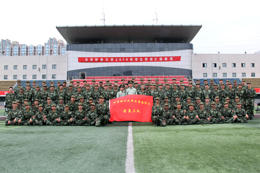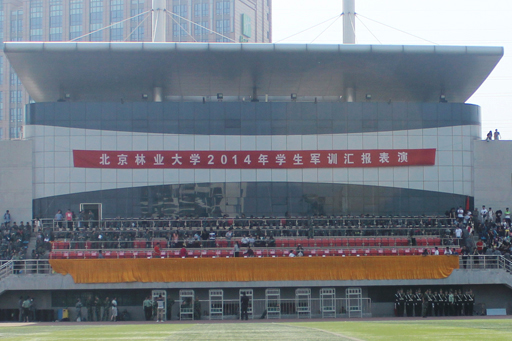 北林国防生网讯 励志强国防,军魂耀北林。5月17日下午,北京林业大学2013级新生军训汇报表演暨学生军训工作开展20周年庆典在校田径场隆重举行。校长宋维明教授、党委副书记全海教授、选培办金文斌主任、温跃戈副主任、军训工作负责单位、校相关职能处室以及各学院主要领导参加了庆典。