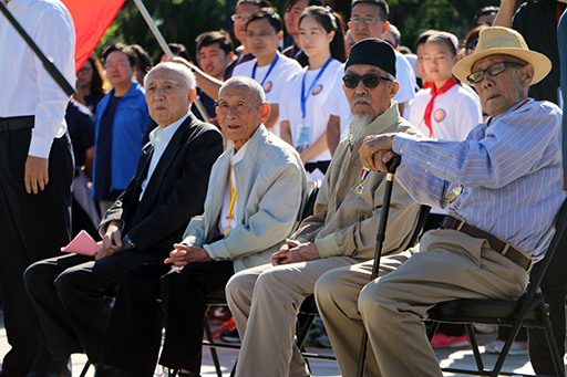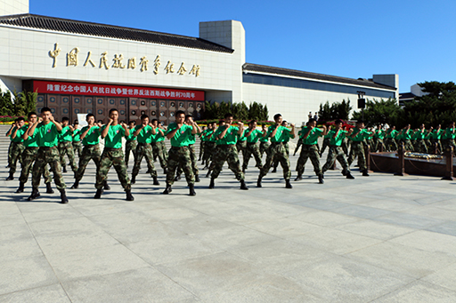 来自15所高校共550人参与了本次男女8公里越野跑活动。活动在一首气势磅礴的《黄河大合唱》中拉开序幕。随后,由北京武警总队第九支队表演军体拳,气势磅礴,引得在场人员连连拍手称好。恰逢中国人民抗日战争暨世界反法西斯战争胜利70周年,活动还邀请到了4位抗战老前辈到场,为运动员鸣枪助跑。
