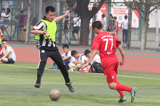 本场比赛由研究生学员队对阵学员一队一区队。哨声吹响,研究生学员队展开猛烈攻势,凭借快速传导球以及精妙的配合,开场不到5分钟,研究生学员队先下一城。此后,研究生学员队频频在对方球门前制造威胁,学员一队一区队门将奋力扑救,化解多次危机,引得场下观众连连叫好。面对如此猛烈进攻,学员一队一区队沉着应对,打出多次防守反击,获得成效,扳回一分。最终,选培办杨敬峰干事上演“梅开二度”,研究生学员队以大比分优势赢得本场比赛胜利。